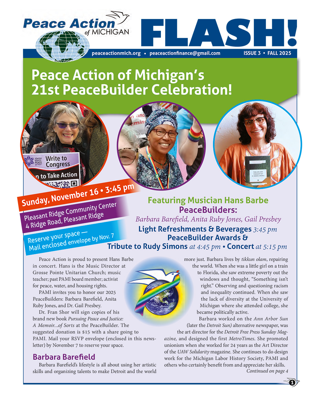 We are a democratic, grassroots movement organizing locally to achieve a new foreign policy leading to a just World without Violence.